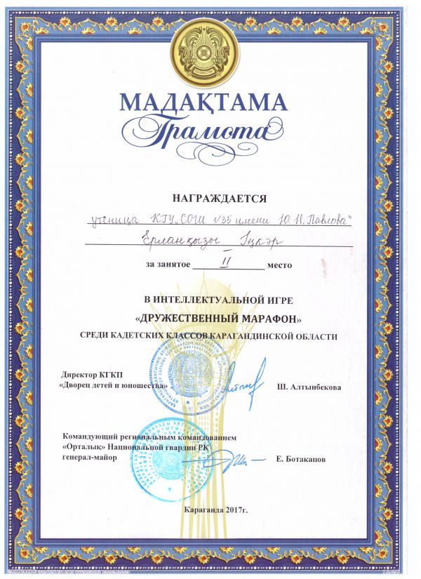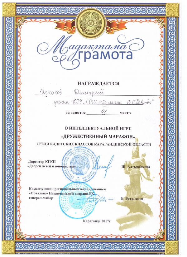 28 апреля 2017 года на базе СОШ №23 города Темиртау прошел «Дружественный марафон» среди кадетских классов Карагандинской области.