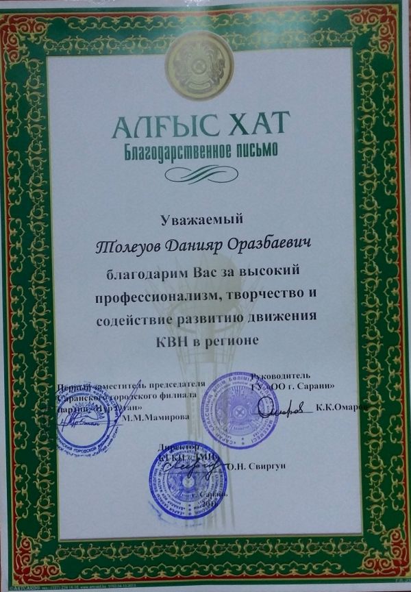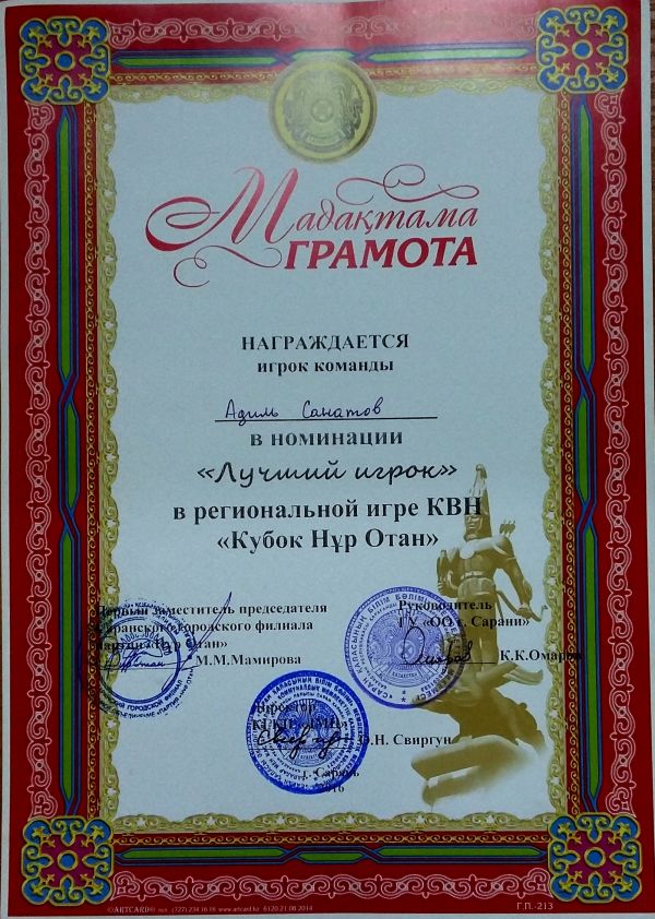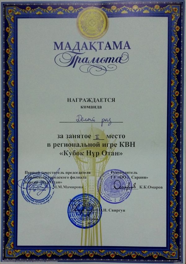 2016 жылдың 15 мамыр айында Саран қаласының Мәдениет үйінде "Нұр Отан Кубогы" үшін Аймақтық КТК ойыны өтті.         Ойынға Қарағанды және…