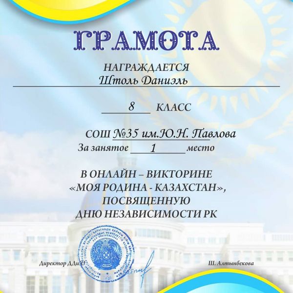 8.11.2020 года в канун празднования Дня Независимости Республики Казахстан на базе ДДиЮ прошла онлайн викторина "Моя родина - Казахстан". В нем приняли уча…