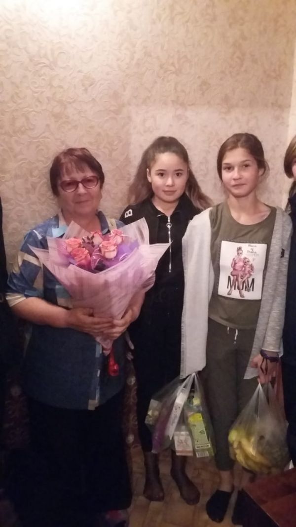 1 октября 2019 года учащиеся 8 "Г" и 7 "Г" классов поздравили с праздником Ширину Нину Ивановну, выразили ей свои тёплые пожеланияи подарили продуктовый набор.