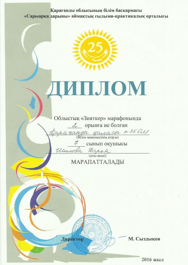 Поздравляем победителей интеллектуального марафона "Зияткер": Бабаеву Екатерину -3 место 8 "Б" класс, Шаханова Ильяса -2 место 9 "В" класс, Кобызева Аллександра -2 место 10 "А" класс.