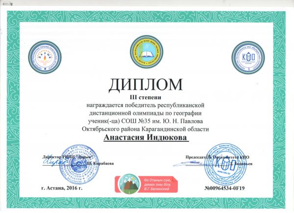 Елизавета Ратуш- ученица 7 «В» класса заняла 3 место в КИО по предмету…