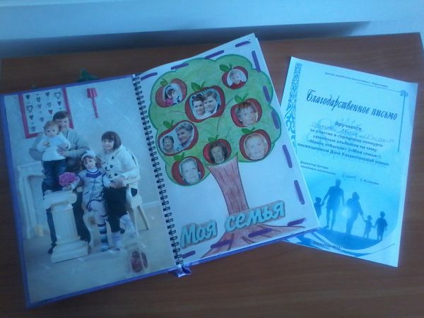Благодарственное письмо было вручено ученице 1 "Б" класса средней общеобразовательной школы № 35 им.Ю.Н.Павлова Одинцовой Авелии за участие в городском конкурсе семейных альбом…