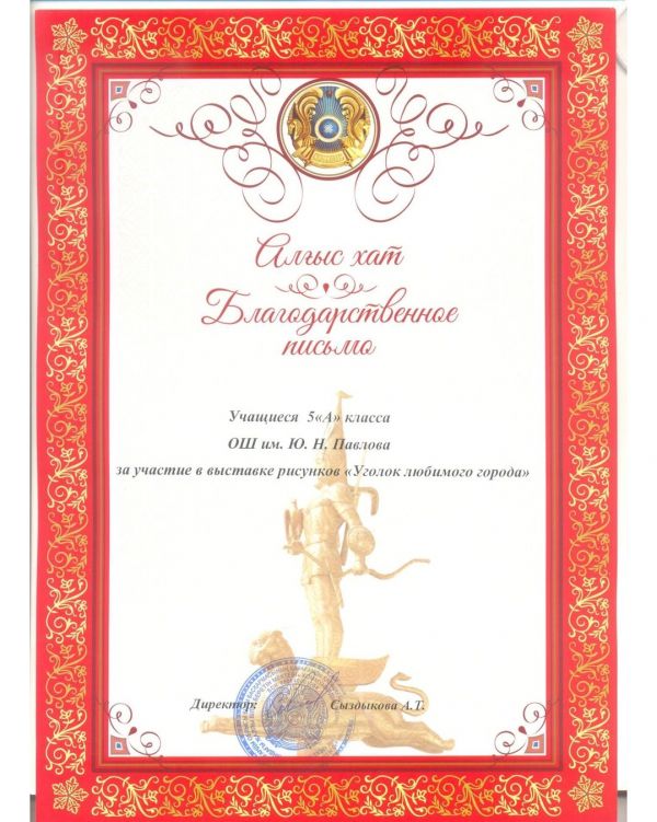 Награждение учащихся за участие в выставке рисунков "Уголок любимого города"