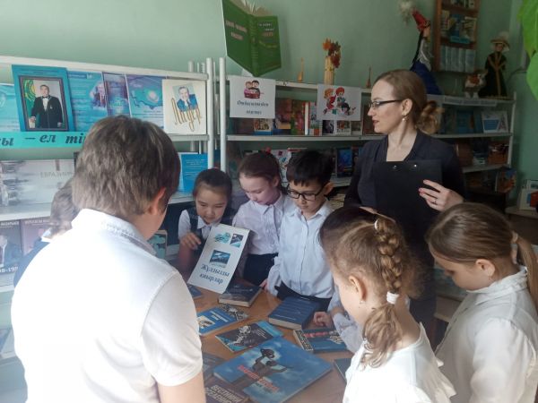 Мектеп кітапханасында ғарыш және ғарышкерлер туралы әдебиеттер мен иллюстрациялардан тұратын «Ғарыштық қашықтық» кітап көрмесі ұйымдастырылды. Бастауыш сынып окушыларымен әдебиеттерге шо…
