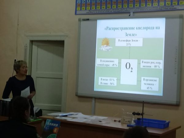 24 декабря 2018 г., в рамках декады естественно-гуманитарного цикла, в 8А классе прошел открытый урок химии на тему "Кислород: получение, свойства и применение."