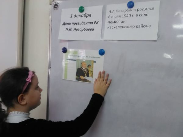 29 ноября 2018 года в 6 "Г" классе прошел классный час ко Дню Первого Президента Республики Казахстан. Классный руководитель Моисеенко В.Г.