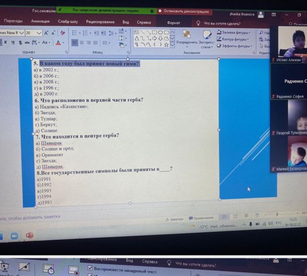 В рамках «Недели правовой грамотности» 08.02.22 в онлайн формате среди учащихся 5 классов прошёл тест на знание Государственной символики Республики Казахстан. Ученики приняли активное…