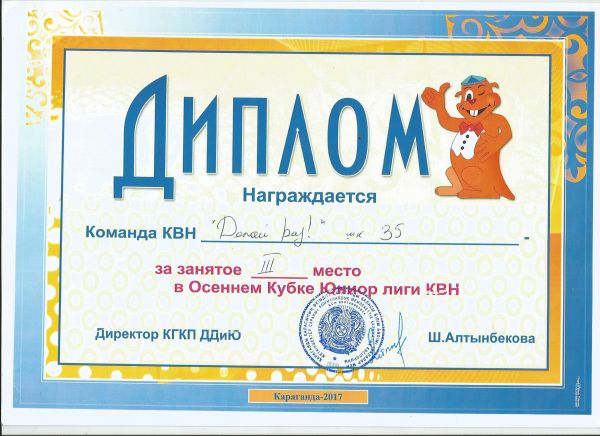 25 октября 2017 года на базе Дворца Детей и Юношество прошел Осенний кубок Юниор лиги Карагандинского КВН. В игре приняли участие 14 команд города Караганды, Темир…