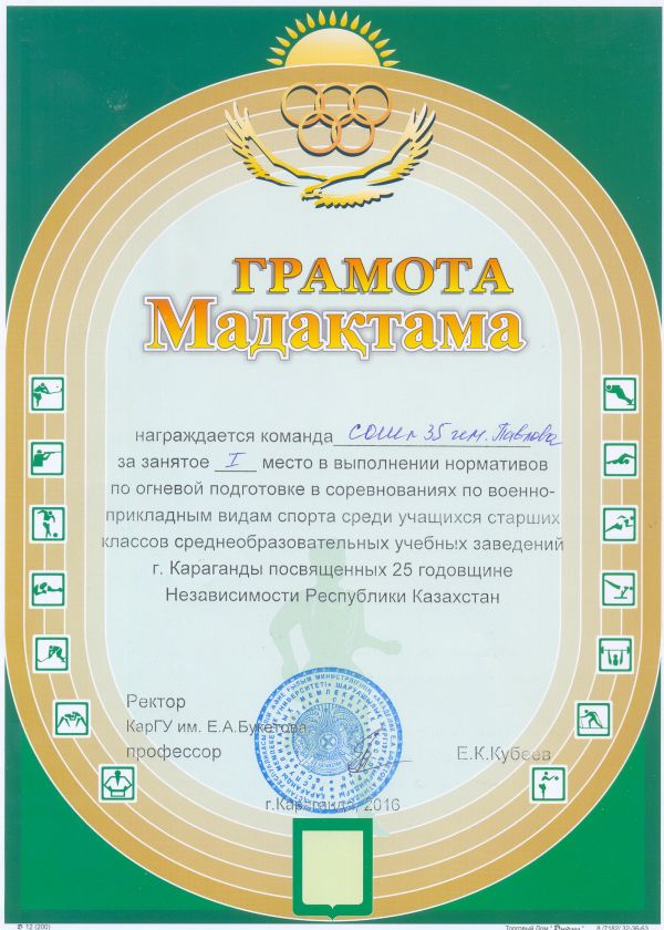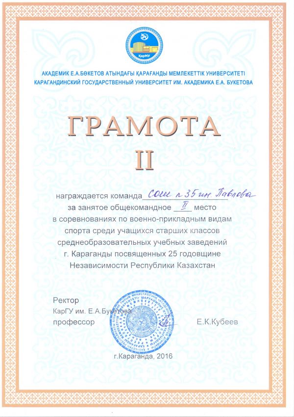25 ноября 2016 года состоялись соревнования по военно-прикладным видам спорта среди учащихся старших классов города Караганды, посвященные празднованию 25-лет…