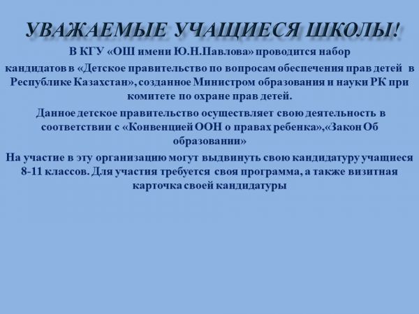 Проведена работа по приему учащихся в класс «Жас сарбаз» общеобразовательной школы имени Ю. Н.Павлова г. Караганды. В соста…