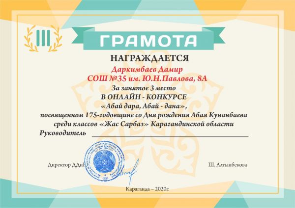 10 ноября 2020 года учебно-методическим центром совместно с отделом образования города Караганды проведен онлайн семинар по обобщению и трансляции опыта работы классов «Жас Сарбаз» КГУ…