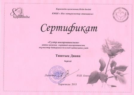 5 "А" сынып оқушысы Саинова Диана "Қысқы қызығы" атты халықаралық конкурсқа қатысып, лауреат дипломына ие болды. Жетекшісі: Қуандық Айтолқын.
