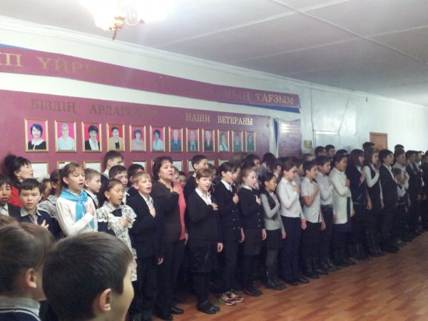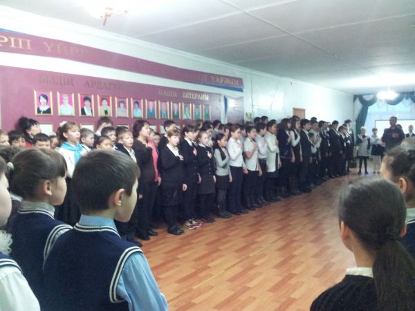 Понедельник 16 февраля в школе была проведена торжественная линейка на тему «Мы поклоняемся героям».