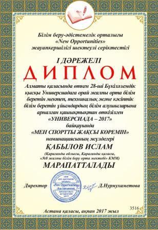 Алматы қаласында өткен 28-ші Бүкіләлемдік қысқы Универсиадаға орай жалпы білім беретін мектеп, техникалық және кәсіптік білім беретін ұйымдардың білім алушыларға арналған қашықтықтан өткізілге…