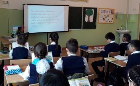 Мектебімізде 27.02. – 04.03.2017 ж. аралығында өтіп жатқан «Алғыс айту» апталығының аясында өзін-өзі тану пәнінің мұғалімі Тусупова Г.К. 4 «Ә» с…