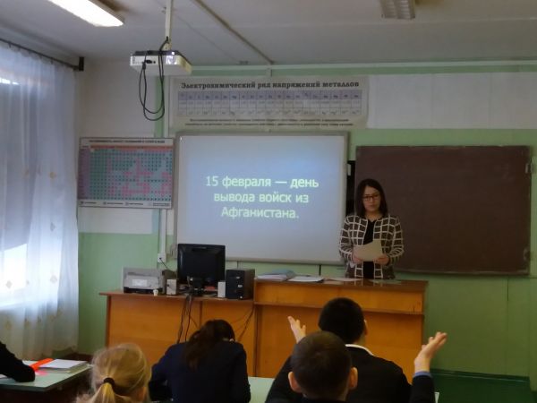 28-летию вывода советских войск из Афганистана был посвящён урок мужества «Афганистан болит в моей душе...», подготовленный учителем русского языка и литературы Серикбаевой Т.Т.и у…
