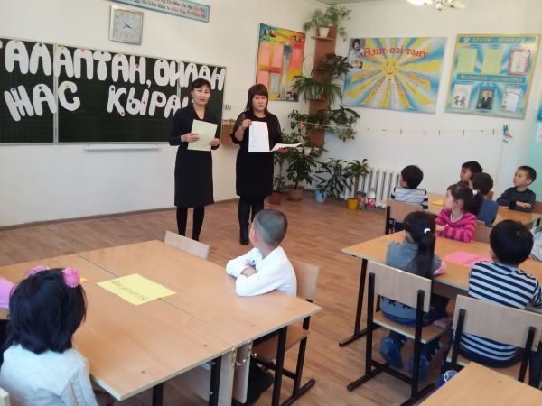 1-қараша 1А, 1Ә сынып расында "Талаптан, ойлан, Жас қыран" тақырыбында сайыс өткізілді. Сайыс 6 кезеңнен тұрды. Әр кезең сайын оқушылар белсене қатысып отырды. Сайыс өте қызықты өтті.