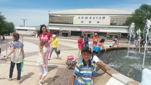 «Күншуақ» жазғы сауықтыру лагерінің балалары № 77 мектепке бассейнге барып, серігіп қайтты