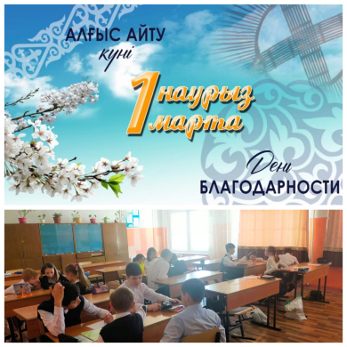 "1-наурыз Алғыс айту" күніне орай 6А сыныбында сынып сағаты өтті