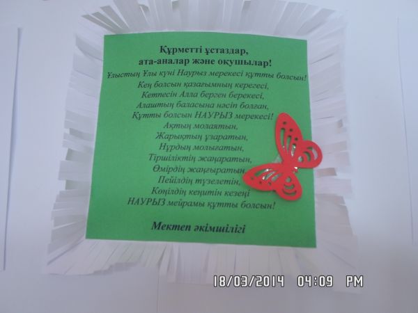 1-9 сыныптар арасында «Жыл басы Наурызға тартар сыйымыз» тақырыбында тілектер акциясы өткізілді.