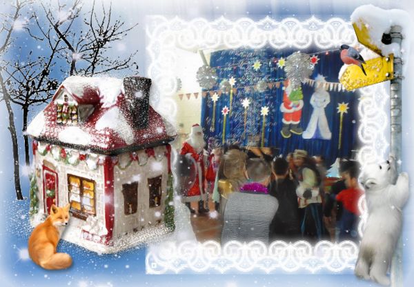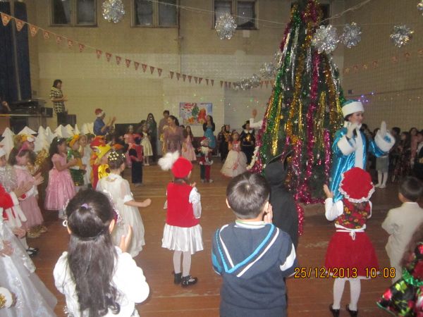 Ертегі кейіпкерлері ескі жылды шығарып салып, жаңа жылды қарсы алды. Балалардың өнерлері тамашаланып, сыйлықтар үлестірілді.