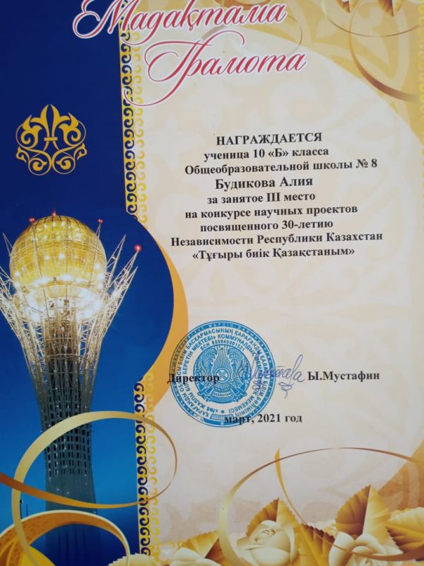ҚР Тәуелсіздігінің 30 жылдығына арналған "Тұғыры биік Қазақстаным" мектепішілік жобалар байқауы ұйымдастырылып қорытындысы шығарылды.