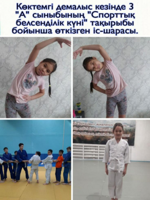 Көктемгі демалыс кезінде 3 "А" сыныбының "Спорттық белсенділік күні" тақырыбы бойынша өткізген іс-шарасы.