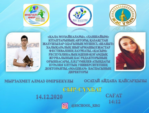 14.12.2020 жылы сағат 14:12де «Қала мозайкалары», «Ханшайым» кітаптарының авторы, Қазақстан Жазушылар одағының мүшесі, «Шабыт» халықаралық шығармашыл жастар фести…