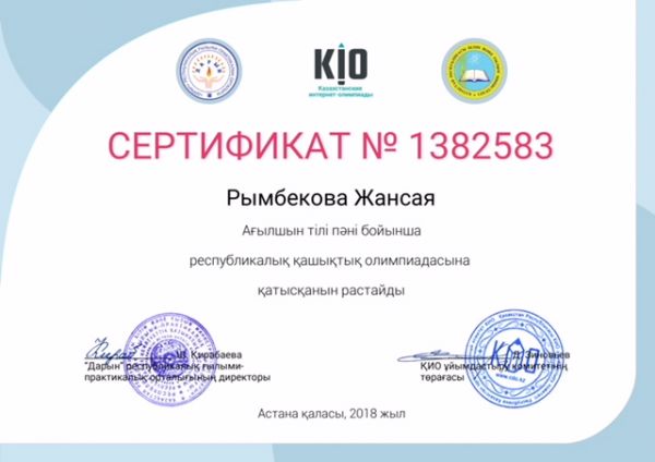 "Өнеге" интеллектуалды білім порталының Республикалық қашықтықтан өткізілген байқауларға қатысып, бастауыш оқушылары жүлделі орындармен марапатталды. Құттықтаймыз!!!
