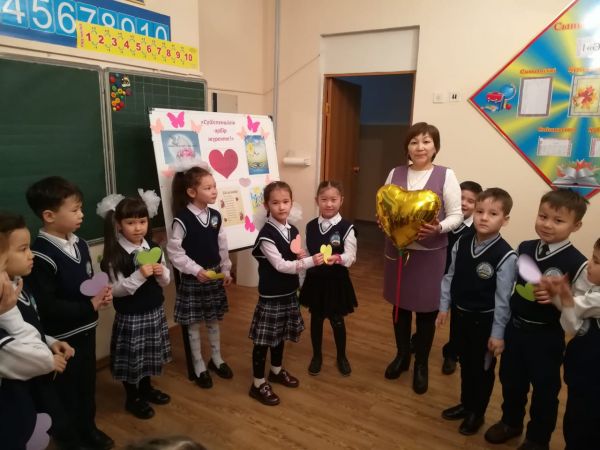 1 «Ә» сынып мұғалімі Кульжабекова Айгуль Жакеновна «Сүйіспеншілік – әрбір жүректе» атты шаттық шеңберін өткізді. Сабақ басында оқушылар дөңгеле…