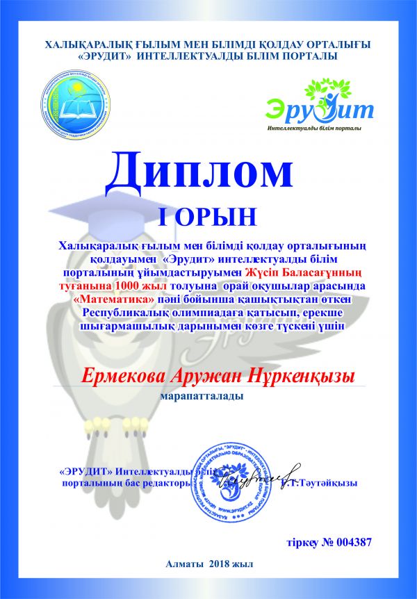 Халықаралық ғылым мен білімді қолдау орталығының қолдауымен "Эрудит" интелектуалды білім порталының ұйымдастыруымен Жүсіп Баласағұнның туғанына 1000 жыл толуына орай оқушылар арасында &quo…