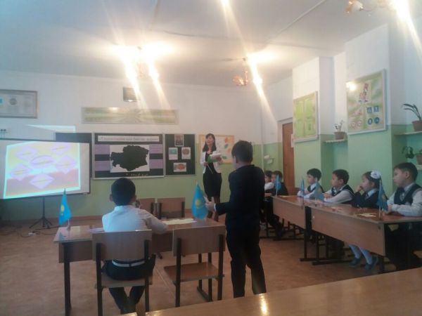 Во 2 "Б" класс прошел открытый классный час на тему: "Лидер страны" Цель классного часа : расширить знания о лидере казахского народа первом президента Р.К. Н.А.Назар…