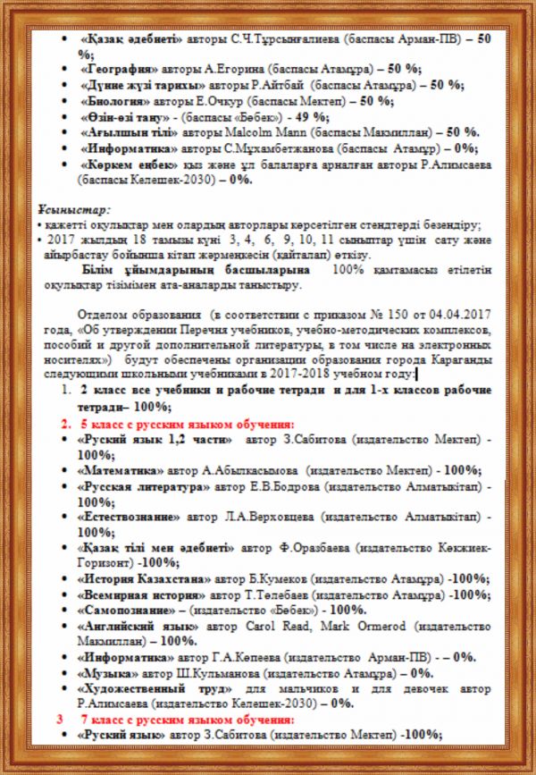 «Оқулықтардың, оқу-әдістемелік кешендерінің, құралдарының және басқа да қосымша әдебиеттердің, оның ішінде электрондық жеткізгіштердің тізбесін бекіту туралы" 2…