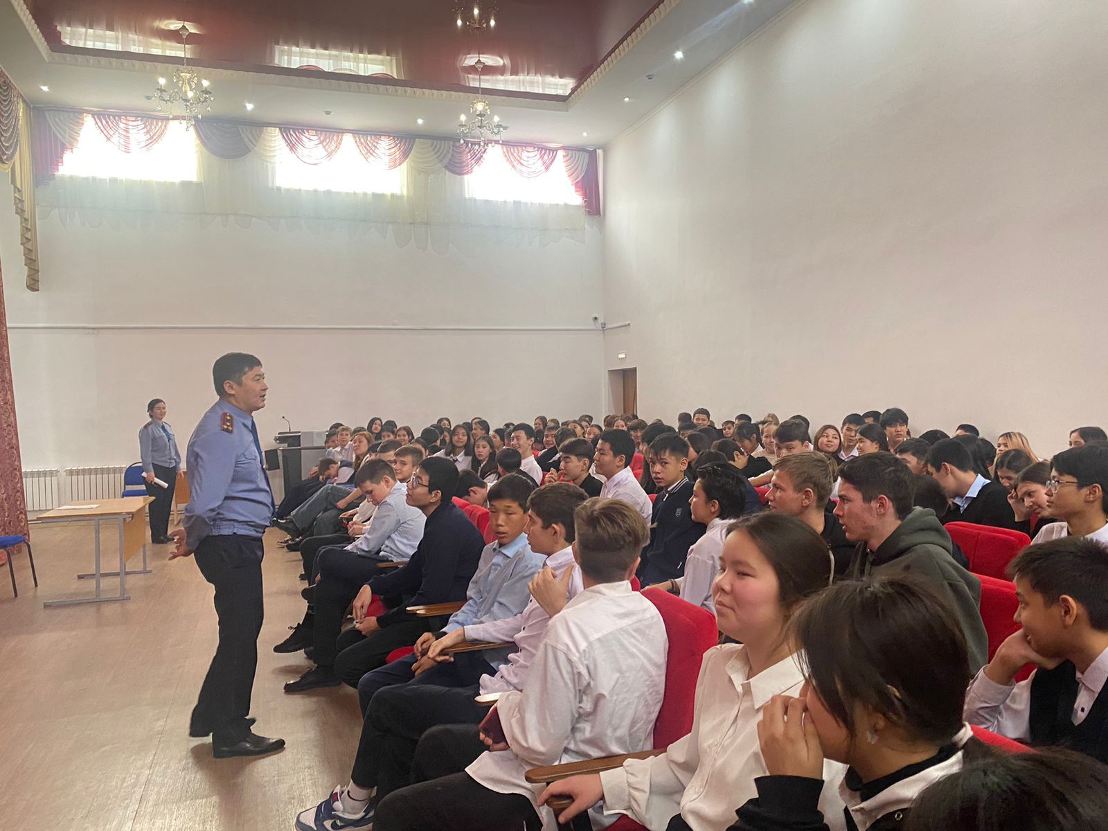 "Есірткіні қолдануы, зияны және жауапкершілігі", "Буллинг", "Жол қозғалысы ережелері", "Жалған шақыру", "Қылмыстар мен құқық бұзушылықтың алдын алу мен болдырмау" тақырыбында дәріс