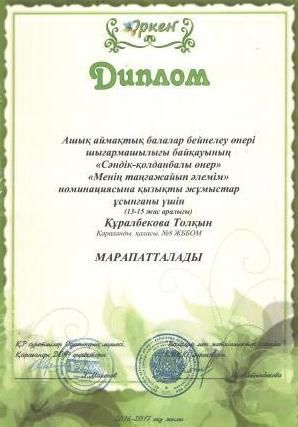 Ашық аймақтық балалар бейнелеу өнері шығармашылығы байқауының "Сәндік-қолданбалы өнер" "Менің таңғажайып әлемім" номинациясына қатысқаны үшін 9 "А" сынып оқушылары Сері…