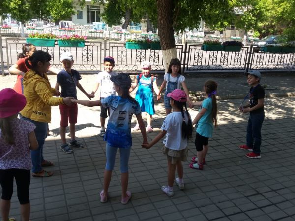 Сегодня дети посетили детскую библиотеку им.Абая. Там дети играли, рисовали на свежем воздухе.