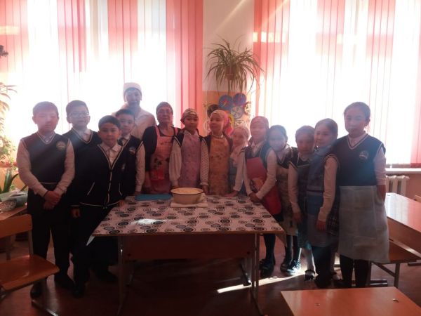 15.11.2019 жыл. «Ғибрат әжелер» клубы факультатив сабағында 4 «А» және 4 «Ә» сынып оқушыларына Мінәш әже мен Гүлнар әже келіп, бауырсақ илеу, п…