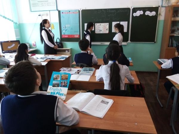 27.02.2019 году учитель английского языка Бекенова К.Б. в 6"Б" классе провела  открытый урок  по английскому языку на тему "Talking about books"
