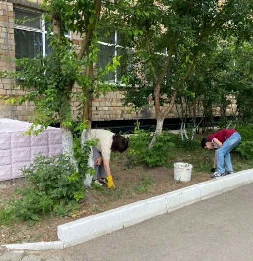 В целях озеленения летней школы, учащиеся проводят работы по озеленению школьного двора