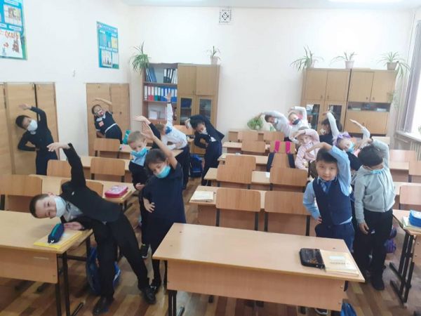 Ежедневно, в классах КГУ «ОШ №91», проводится утренняя физическая гимнастика и физкультминутки. Активно разминаются учащиеся 1 «б» класса. Классный руководитель Ларионова Е.В…