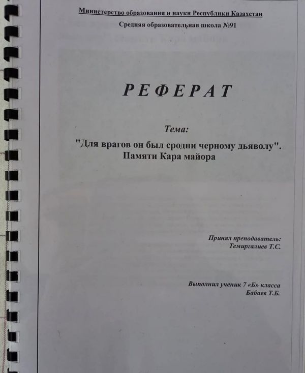 10 февраля 2021 года в городе Караганде на базе КГУ «ОШ №91» дистанционно прошел Урок мужества организованный преподавателем - организатором НВТП Хасеновым А.Е.