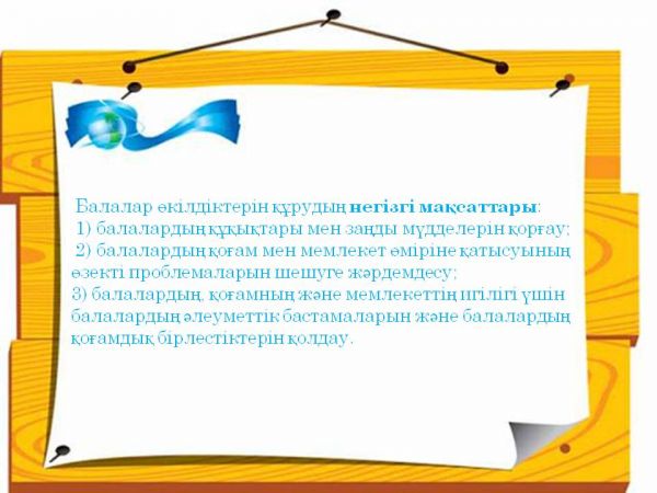 "№91 ЖББОМ" КММ Қазақстан Республикасында балалардың құқықтарын қамтамасыз ету мәселелері жөніндегі балалар өкілдіктері.