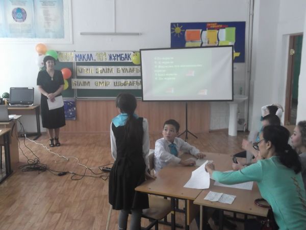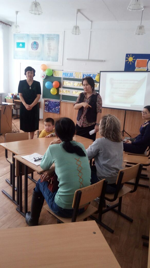 Мақсаты: оқушылар мен ата – аналардың тілге деген сүйіспеншілігін арттыру, ана тілін қадірлеуге баулу. Ата – аналар жиналысы екі бөлімнен тұрды.  Бірінші бөлім:«1001 мақал…