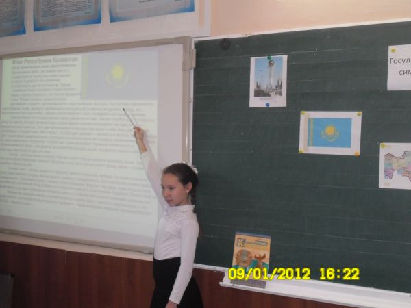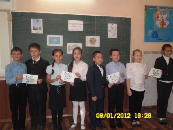 В 4 "в" классе был проведен открытый классный час на тему: "Государственные символы РК"