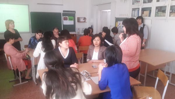 22.02.2016 ж. №91 мектебінде "Диалогтік оқыту арқылы оқушылардың ойлау дағдыларын қалыптастыру" тақырыбында № 6 ЖББОМ-нің бірінші деңгей мұғалімдері Б.М.Ахметова, Р.А.Амирова, С.И.Жу…