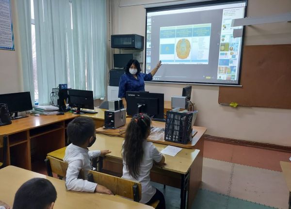 В 1 б классе прошел кл.час по теме "Государственные символы РК". Классный руководитель:Ларионова Е.В.