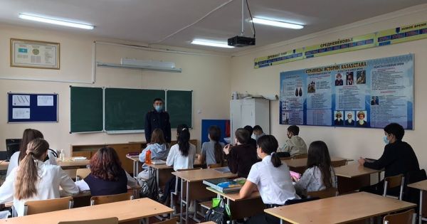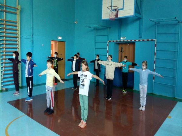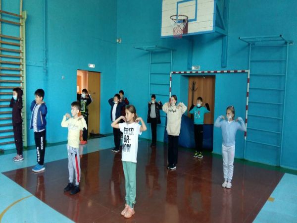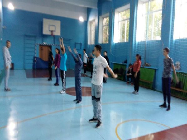 Ежедневно, в классах КГУ «ОШ №91», проводится утренняя физическая гимнастика и физминутки. Активно разминаются учащиеся 9 «б» класса.
