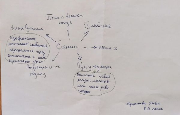 В рамках недели читательской грамотности «XXI век-век грамотного поколения!» в восьмых классах был проведен интеллектуальный марафон «Конкурс знатоков» . Цель: развитие творческих способностей учащихся. Ребята составляли кластер по произведениям, опи