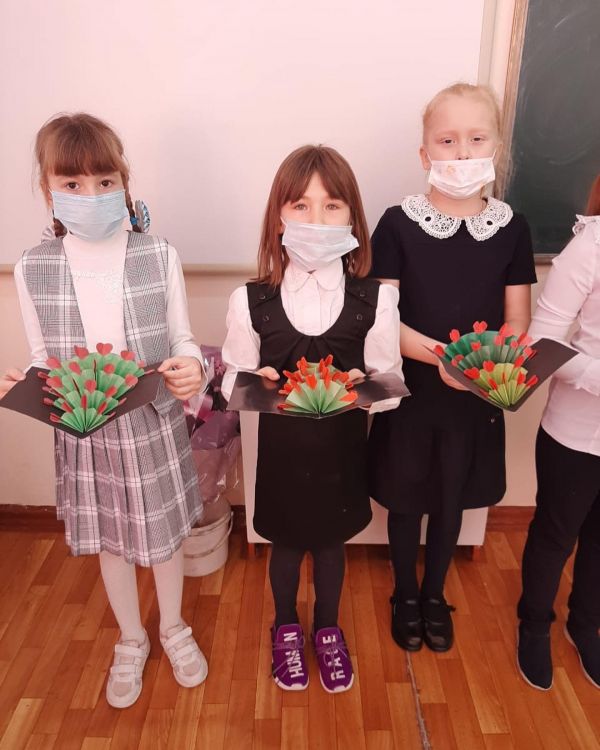 Учащиеся 2"В" класса приготовили подарки мамам своими руками.С праздником! Классный руководитель:Гибадуллина Е.Д.
